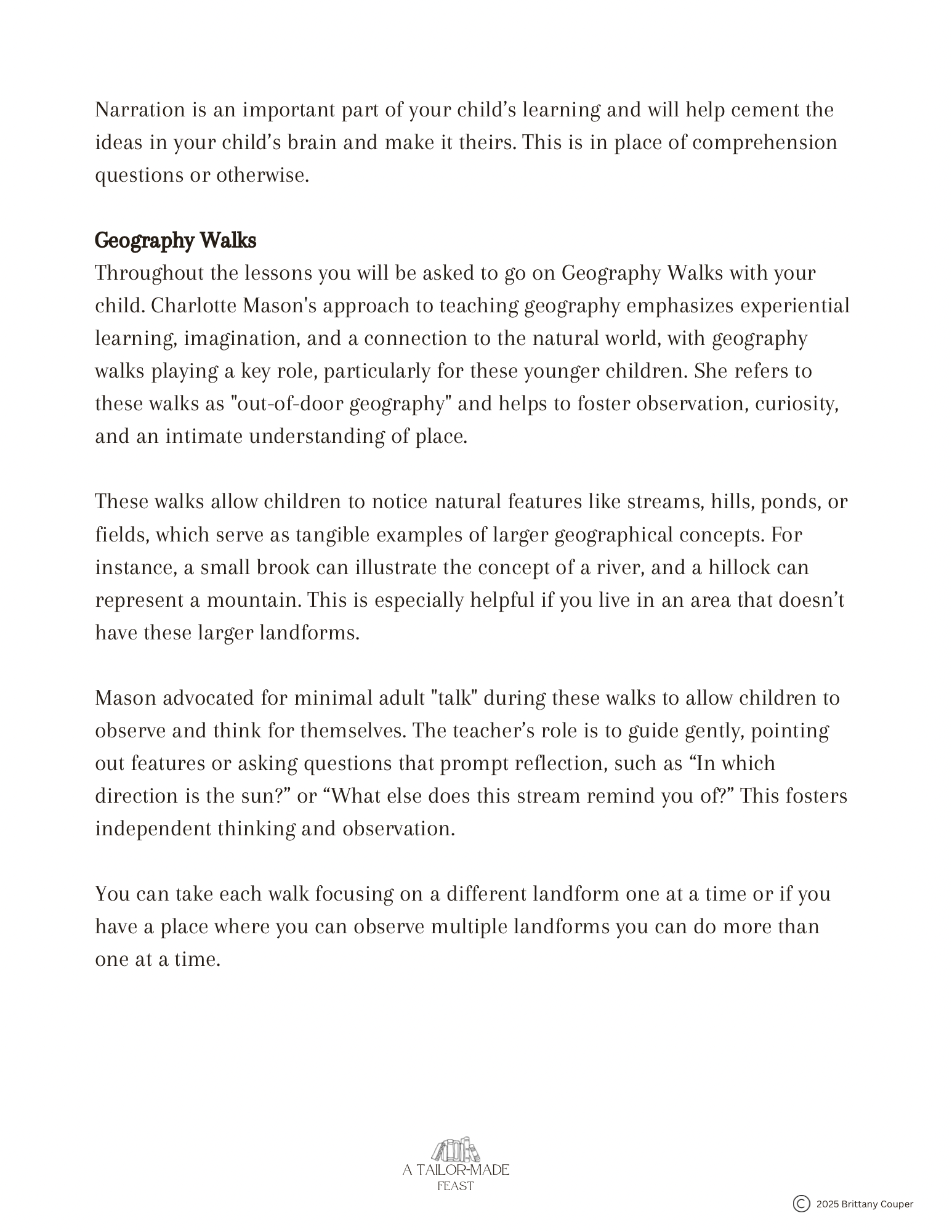 - Holistic Learning: Integrates geography with nature study, science, and storytelling, aligning with Charlotte Mason’s philosophy of educating the whole child—mind, body, and spirit.