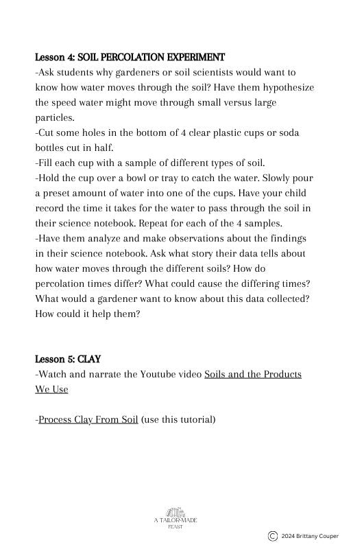Some of the topics covered in the guide include... soil types, percolation rates, clay processing, making potting soil, in depth study of various soil creatures, soil food web/nutrient cycle, soil pH and much more.