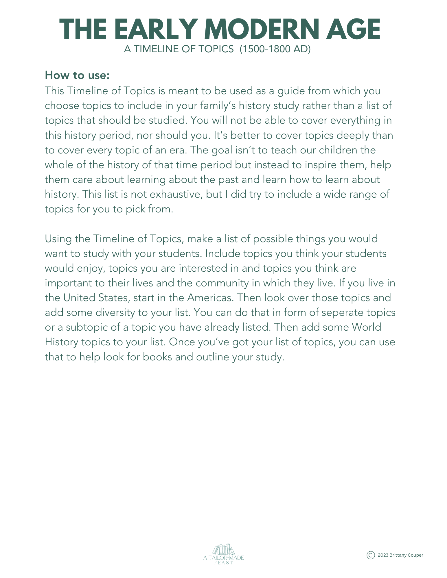 Gain the confidence and empowerment you need to create a journey into history designed specifically for your homeschool with The Early Modern Age: A Timeline of Topics!