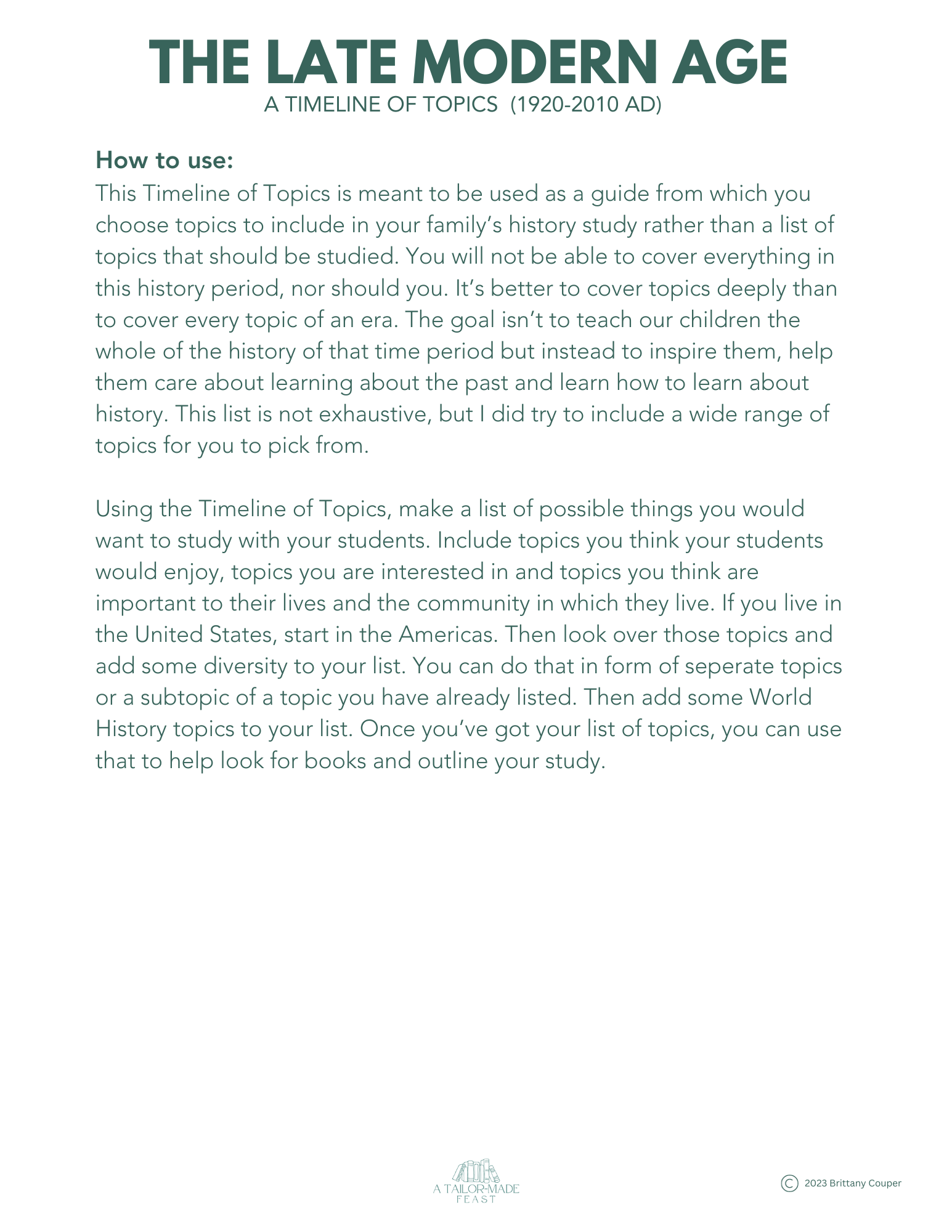 Gain the confidence and empowerment you need to create a journey into history designed specifically for your homeschool with The Late Modern Age: A Timeline of Topics!